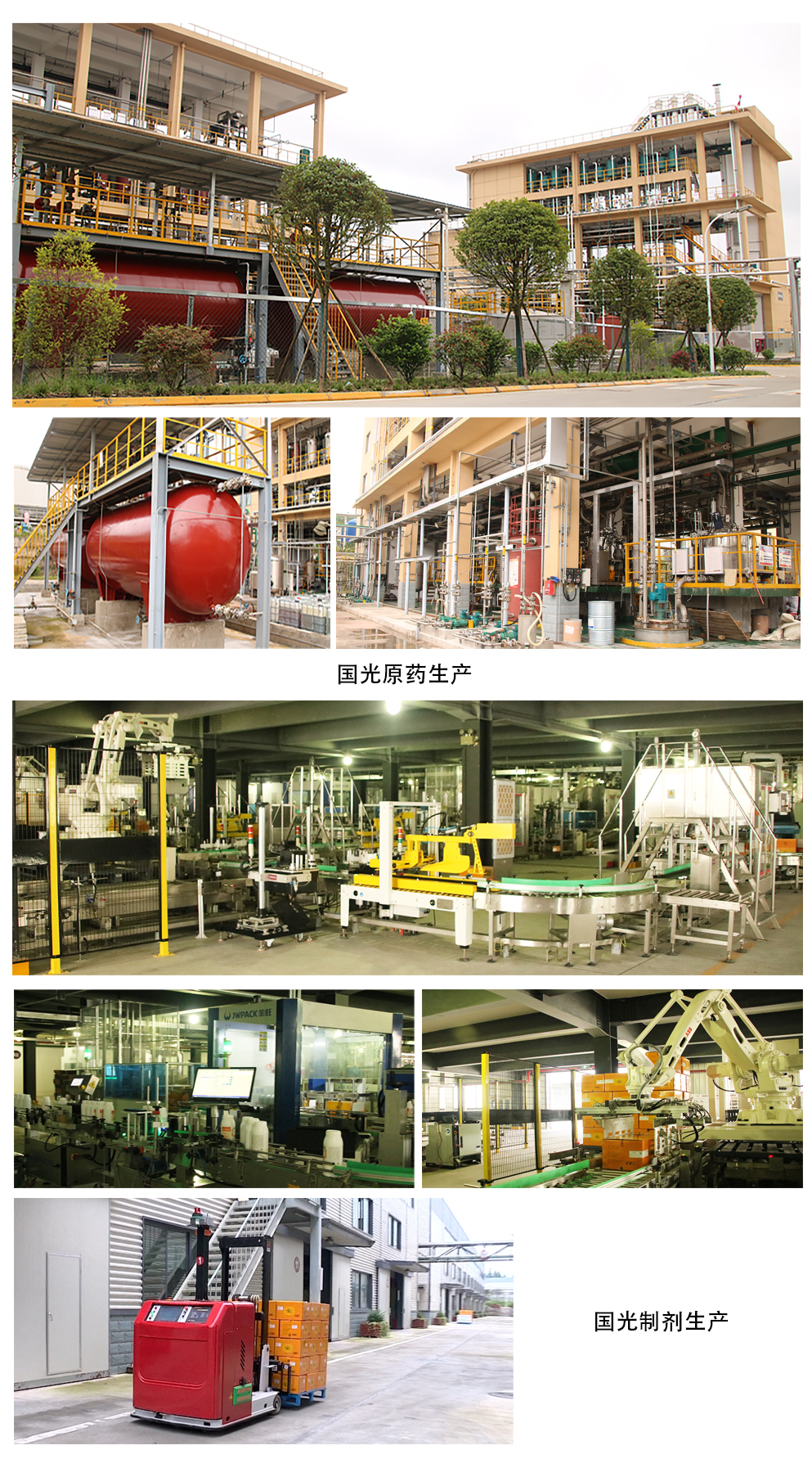 公司是一個重視研發和市場開拓的啞鈴型企業,由多學科專家組成的公司產品研發機構是省級企業技術中心,具有較強的研發和技術優勢、原藥合成和制劑加工的優勢。國光視產品為企業生命。公司通過了ISO9001:2008國際質量管理體系,對產品進行嚴格的質量管理。國光質管部是國家石油和化學工業協會認定的“A級質檢機構”,配備了美國Agilent1100、1200液相色譜儀、SC-6氣相色譜儀、色譜工作站等現代化的檢驗檢測設備。為確保產品質量的可追溯性,專門建立質檢留樣室,每生產一批產品,在出廠前均要經過嚴格的質量檢測并留樣。