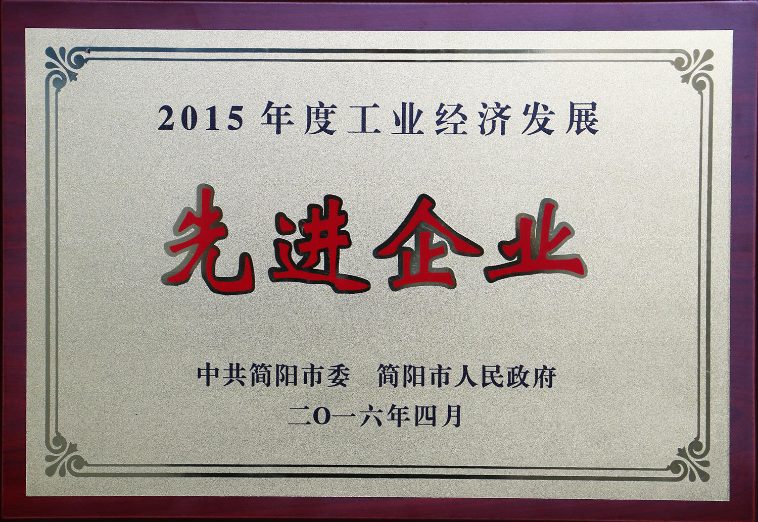 四川國光榮獲簡陽市2015年度工業經濟發展先進企業榮譽