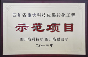 我公司采用自主知識產權研發的科技新產品榮獲2013年度“四川省重大科技成果轉化工程示范項目”稱號。