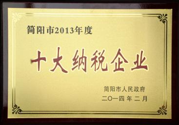 公司獲評簡陽市2013年度十大納稅企業