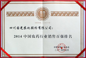 近日,在中國農藥工業協會主辦的2014年中國農藥行業經濟運行分析會暨2014年農藥行業排行榜發布會上,國光上榜“2014中國農藥行業銷售百強排名”。百強榜以2013年企業銷售額為數據基礎進行排名。