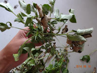 癥狀:病菌從子葉或幼根侵入植株,在根頸部產生黃褐色水漬狀病斑,后變黑褐色,引起根基組織腐爛。當潮濕環境時,病部產生分生孢子器(即黑色小突起),病部表皮易剝落,纖維組織外露。當環境干燥時,病部表皮凹陷,緊貼莖上,成株期感病后,約10~30天全株枯死,發病部位多在莖基部貼地面,有時也出現主莖和側枝分期枯死現象。