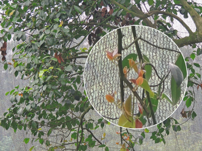 5、修枝疏葉減少水分蒸騰,并及時給樹體輸液補水;